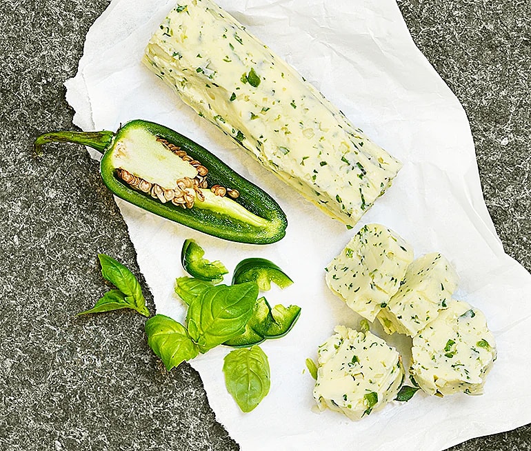 När dina örter börjar se lite trötta och tråkiga ut kan du såklart använda även detta. Du kan hacka ner din örter tillsammans med vitlök, och blanda med smör och ev chili om man vill ha lite extra styrka. Lägg sedan ut smöret på ett bakplåtspapper, rulla det till en rulle och ställ in i kyl eller frys. Plocka sedan fram och njut av dina tröta örter.